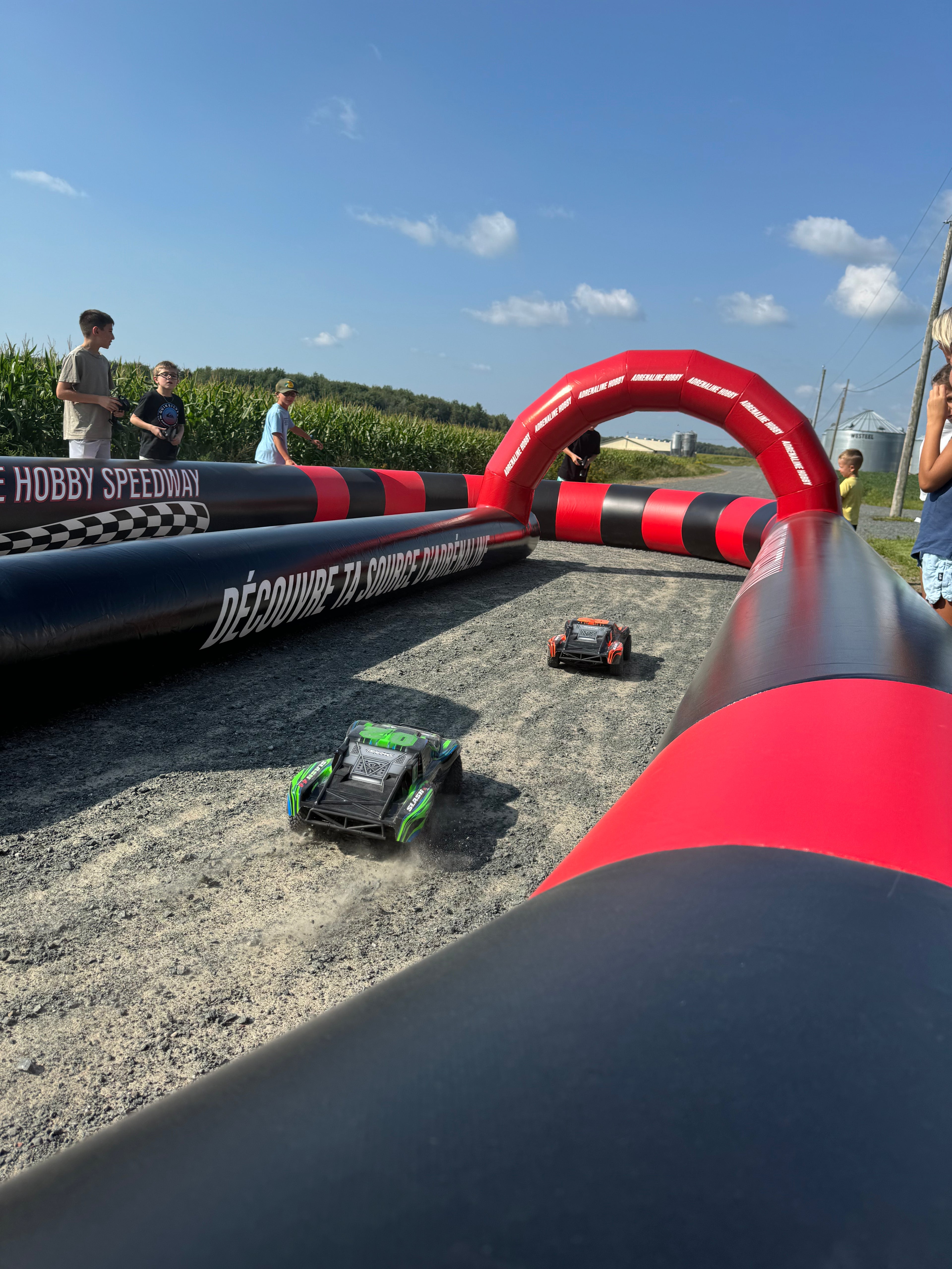 * Avec le forfait "Du Fun dans ma cours", aucun véhicules téléguidés ne sont inclus. Vous devez utiliser ceux que vous possédez, seulement les véhicules de grandeur 1/10 ou plus petit sont permis dans le circuit de course gonflable.