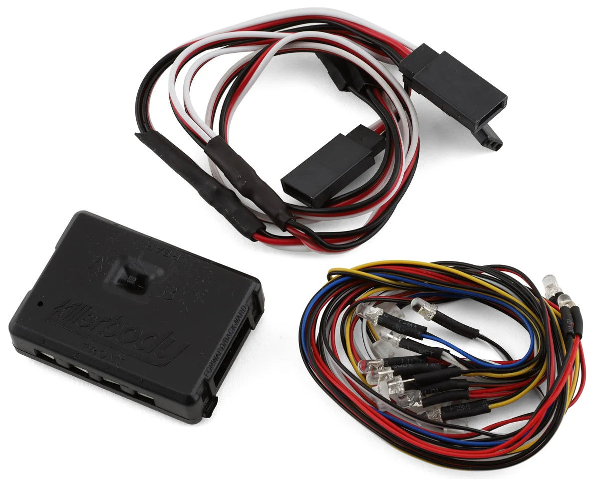 Killerbody B-MAX NDDP GT-R NISMO GT3 LED Light Kit with Control Box. This optional light kit is intended to add a custom look to your Killerbody B-MAX NDDP GT-R body (KLR-48664 or KLR-48758). The included light controller allows for headlight, brake light, turn signal and exhaust lighting functions. Package includes eleven LEDs, two Y-harnesses and one control box.