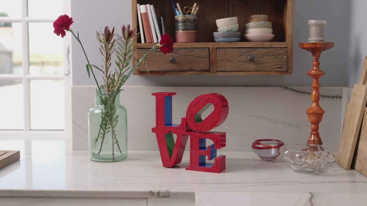 Robert Indiana’s LOVE sculpture is recognized around the world as an iconic symbol with a universal message, and now you can display it in your own home. The buildable LEGO Art model is a faithful celebration of Indiana’s sculpture, featuring a similar design and the same vibrant red, blue and green colors, and looks great on a table, desk or mantel in any room.