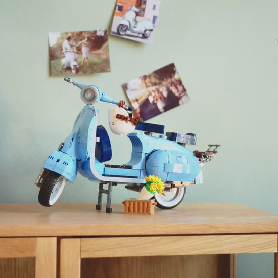 An Italian style icon. A symbol of freedom. A tribute to La Dolce Vita. The Vespa Piaggio is all of these and more. Now you can build and display your own model version with this LEGO® Vespa 125. Inspired by the classic 1960s Vespa, it’s presented in pastel blue – one of the Vespa’s original production colors. Enjoy a mindful project crafting all the details on a model to display with pride.