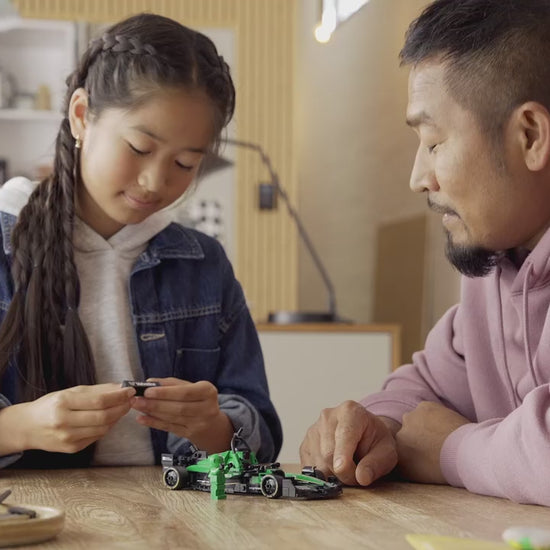The LEGO® Speed Champions Aston Martin Aramco F1® AMR24 Race Car (77245) vehicle set lets boys and girls aged 10 plus build, display and recreate action-packed F1 races. This F1 race car model for kids and adult car collectors includes details from the car that competed in the 2024 Formula 1® World Championship season. The Aston Martin Aramco F1 race car features a cockpit that opens by lifting the halo bar, a rear wing, wishbone suspension, sponsor stickers and wider rear tires imprinted with “Pirelli.” The vehicle kit comes with a driver minifigure in an Aston Martin Aramco F1 outfit and a winged helmet to place inside the cockpit and stage races.