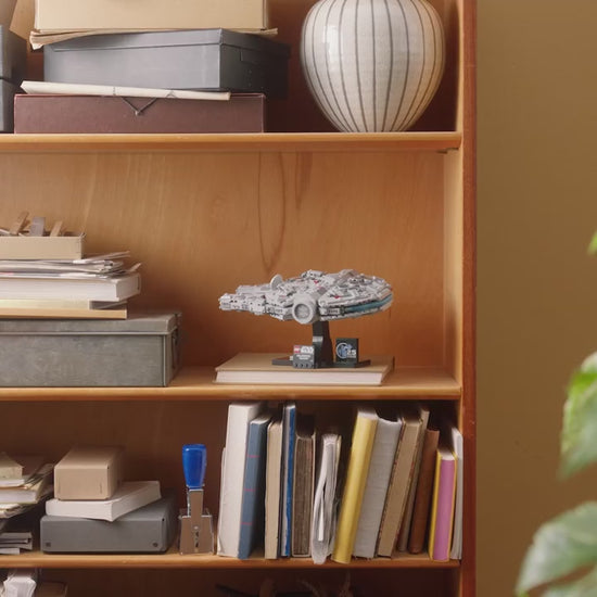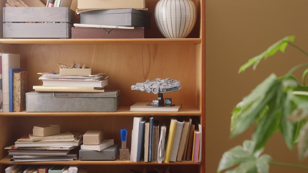 Summon your creative force to build the most iconic starship in the Star Wars™ universe: Han Solos Millennium Falcon. Capture instantly recognizable details of the starship as it appeared in Star Wars: A New Hope. Display the Millennium Falcon at a dynamic angle on the stand and add the nameplate and special LEGO® Star Wars 25th anniversary brick to complete an epic centerpiece.