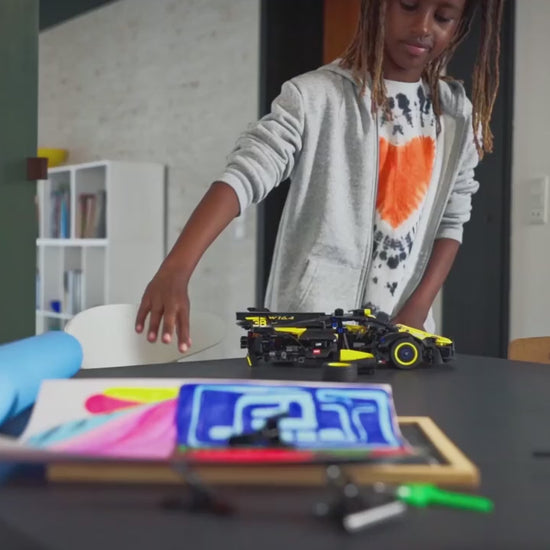 Inspire kids aged 9 and up to build their own race car model with this LEGO® Technic™ Bugatti Bolide (42151) toy set. They'll enjoy a challenging project as they craft all the true-to-life details, including a working W16 engine, steering and scissor doors. The car's stunning looks steal the show, with a yellow and black color scheme and authentic sticker details. After building and exploring the car, kids can display their collectible model with pride. LEGO Technic buildable model sets feature realistic movement and mechanisms that introduce young LEGO builders to the universe of engineering in an approachable and realistic way. Let the LEGO Builder app guide you and your child on an easy and intuitive building adventure. Zoom in and rotate models in 3D, save sets and track your progress.