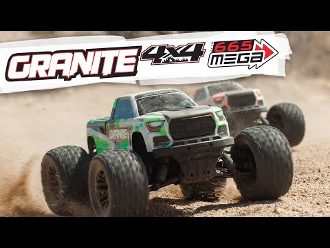 Step up to unstoppable 4x4 monster truck bashing with the 1/10 scale ARRMA GRANITE MEGA 665 RTR. Now equipped with an 11% larger brushed motor and 3S brushless-ready transmission, it offers performance and power that grow right along with your skills.