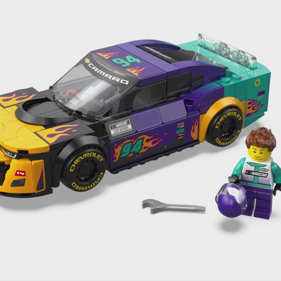 Boys and girls aged 9+ and NASCAR® fans can collect, build, play with and display this LEGO® Speed Champions NASCAR Next Gen Chevrolet Camaro ZL1 (76935) toy car for kids. This powerful race car decorated in vibrant colors and flames includes design details from real-life cars that race in the NASCAR Cup Series. The NASCAR toy model car includes realistic features, such as the rear spoiler, front grille, hood, headlights and wheels, an interior featuring a roll cage, dashboard, gear shift and fire extinguisher, and authentic Camaro, Cup Series and NASCAR logos. The race car playset also comes with a NASCAR driver minifigure that kids can place behind the wheel to play out exciting races.